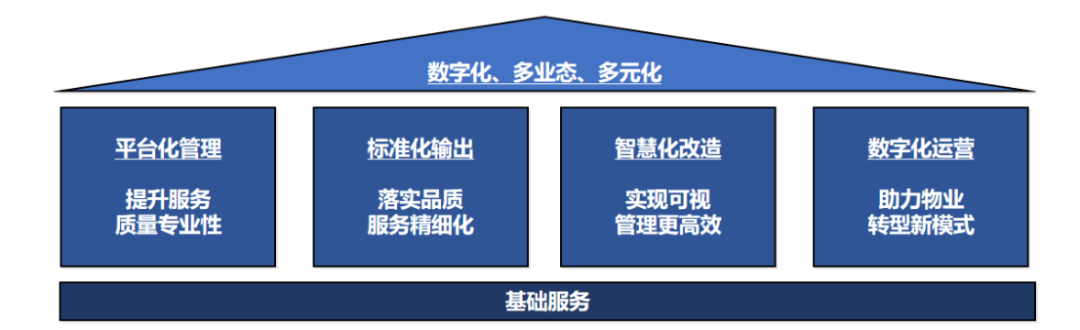歷經多年實踐沉淀,公司創新采用“1+4=N”特色運營體系:以全周期、高品質基礎服務為根基,依托“平臺化管理、標準化輸出、智慧化改造、數字化運營”四大支柱,將高品質服務場景落地在各業態項目,源源不斷孵化可視化、精細化、高效化的綜合運營解決方案,穩步實現從傳統物業向數字化多元服務商的進階,持續為客戶資產保值增值與區域產業騰飛注入新動能。