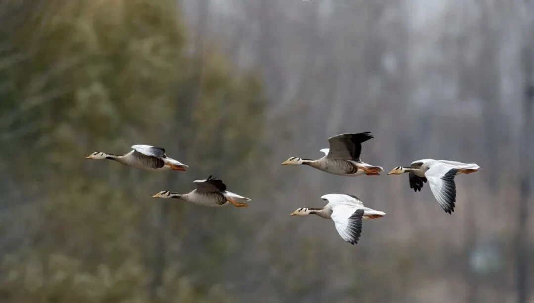 斑頭雁以忠貞著稱,夫妻共同育雛,堪稱鳥類中的“帶娃標(biāo)兵”。觀鳥人士指出,斑頭雁對中途停歇地的水質(zhì)、食物及人為干擾極為敏感,而漢江長壽島段水質(zhì)清澈、食物豐富,因此吸引了它們在此歇腳。