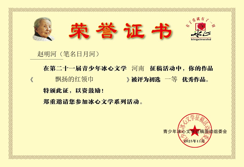劇作家日月河青少年勵志電影劇本《飄揚的紅領巾》獲第二十一屆“青少年冰心文學”河南征稿初選一等獎