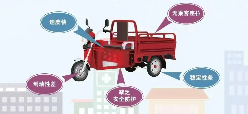 2.制動系統“超負荷”,突發情況難應對。三輪車的制動系統承載力有限,違法載人后整車重量翻倍,剎車距離會大幅延長。當遇到行人橫穿馬路、車輛突發變道等緊急情況時,駕駛員根本無法及時制動,很容易引發追尾、碰撞事故。更危險的是,三輪車沒有安全帶、安全氣囊等防護裝置,一旦發生碰撞,駕乘人員直接暴露在撞擊力下,傷亡風險直線上升。