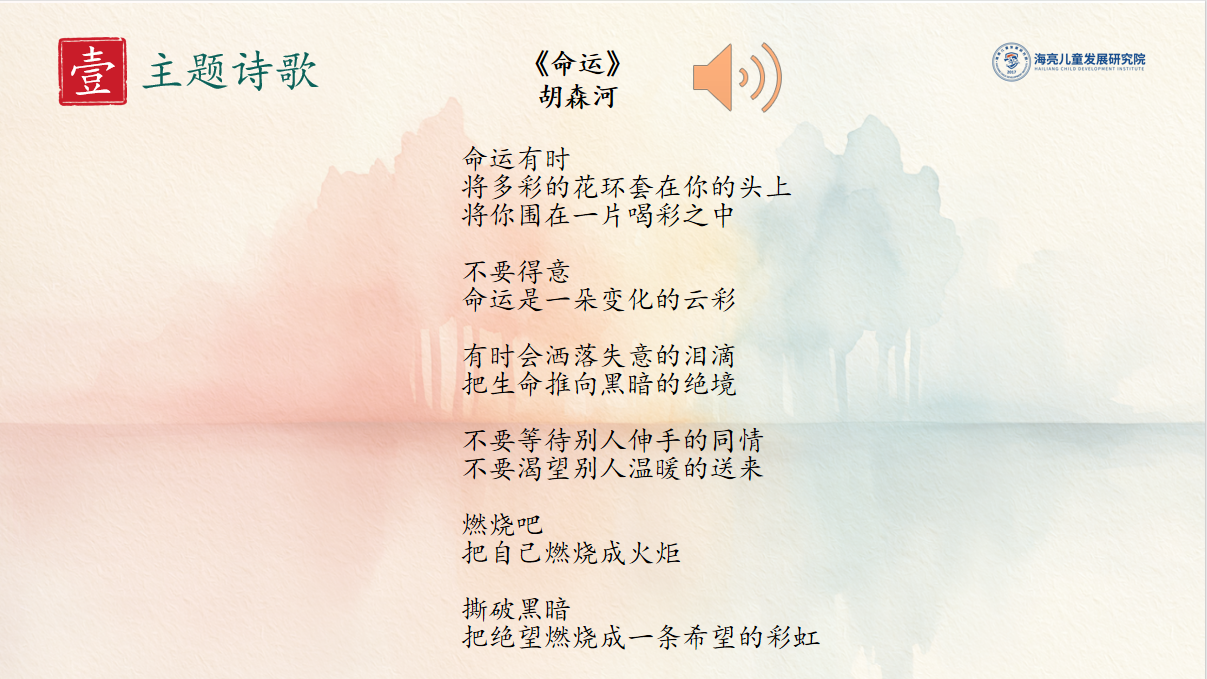 她想通過這首詩,告訴孩子們:你的命運,必須握在自己手里。