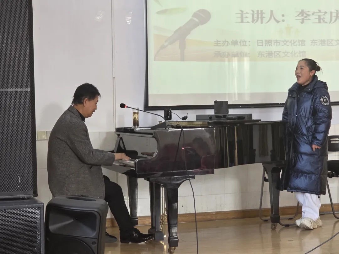 本次講座特邀原日照市文化館研究館員、副館長知名聲樂老師李寶慶擔任主講。李老師從聲樂的本質與發聲原理入手,系統講解了氣息運用、發聲技巧與共鳴訓練等核心內容,通過生動形象的比喻和通俗易懂的語言,將專業的聲樂知識轉化為學員易于理解和吸收的實用技巧。