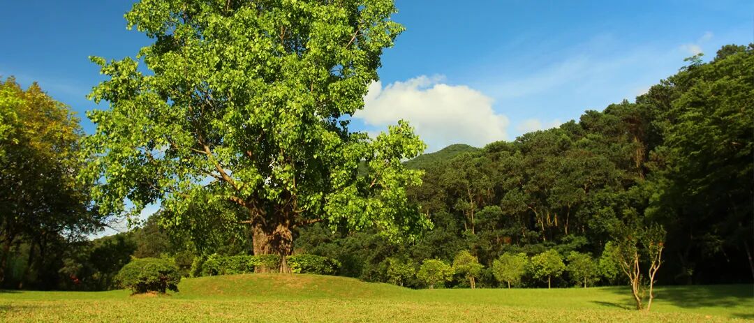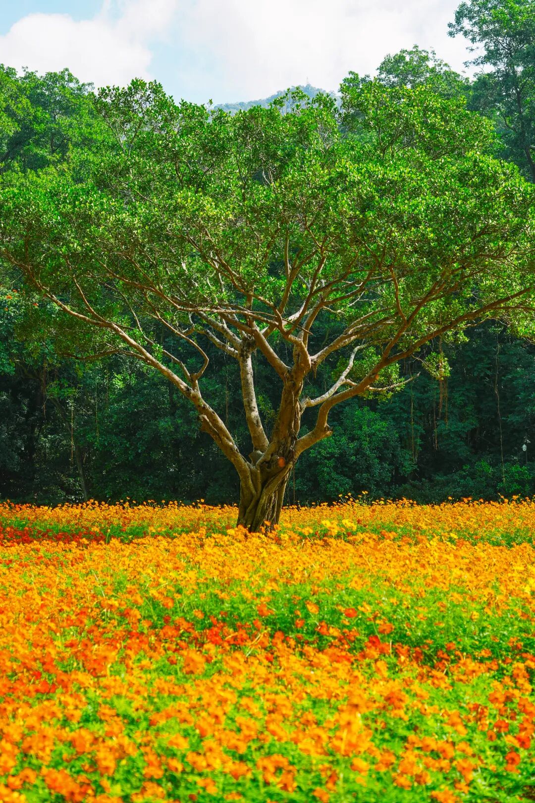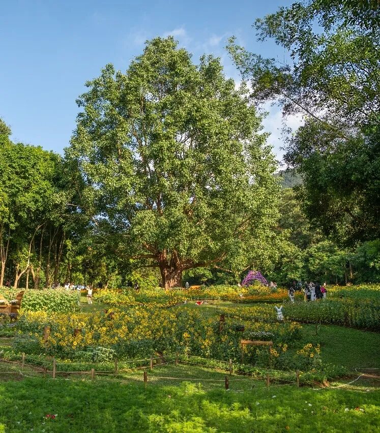 拍攝中自帶治愈濾鏡的取景地——菩提樹大草坪,是仙湖植物園里的“松弛感C位”。菩提樹草坪緊鄰羅漢松園,是園區(qū)里的開闊型自然空間:千余平方米的草坪舒展鋪開,百年菩提樹撐開傘狀巨冠,是草坪的視覺核心。