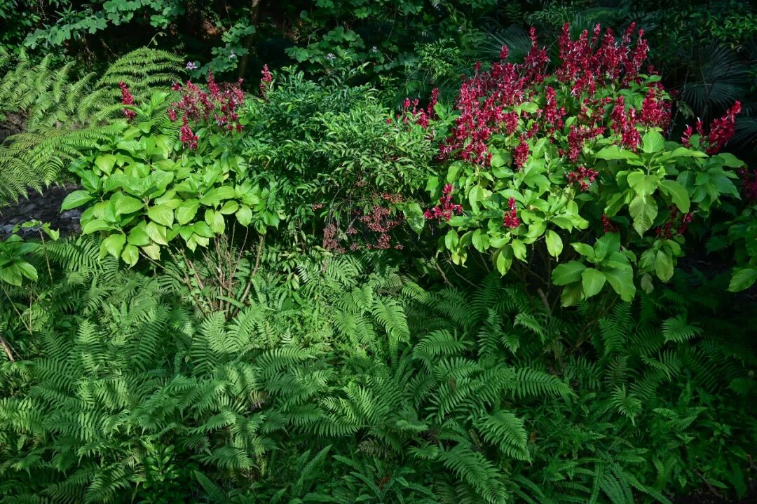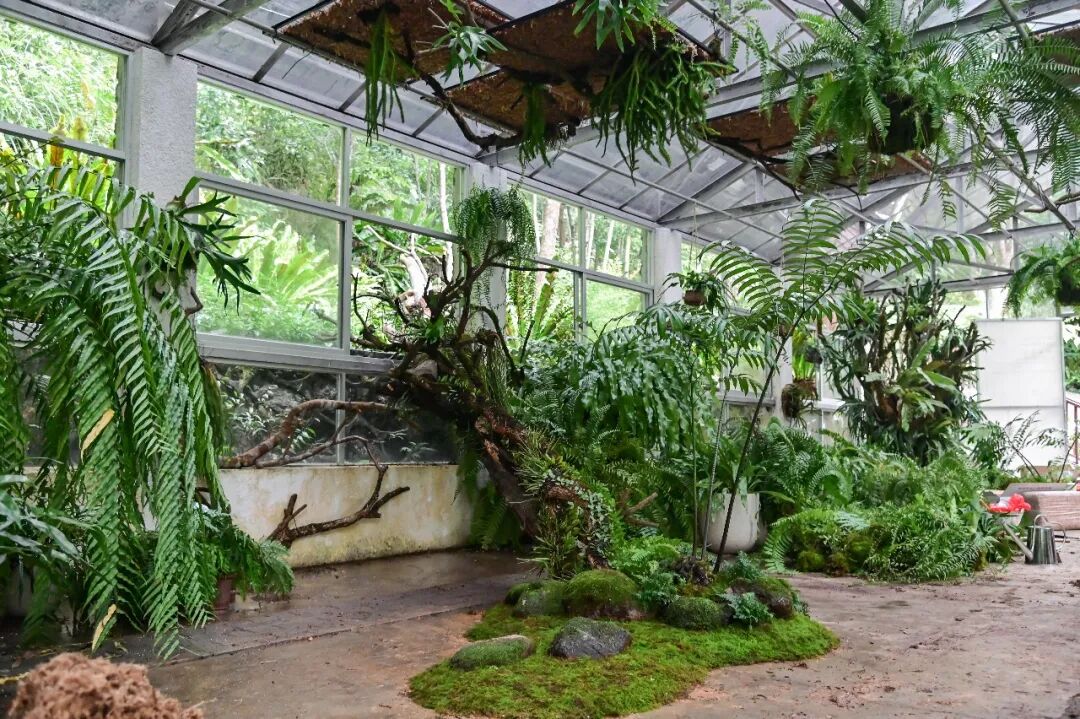 桫欏撐起天然綠傘,羽狀復葉層層疊疊,陽光穿透枝葉灑下斑駁光斑,自帶柔光濾鏡。鹿角蕨等珍稀品種攀附樹干,映襯濕潤的苔蘚地面,仿佛闖入熱帶雨林的隱秘角落。