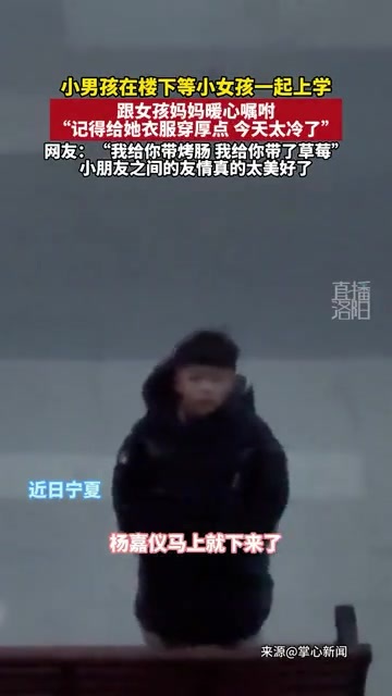 小男孩在樓下等小女孩一起上學(xué),跟女孩媽媽暖心囑咐 “記得給她衣服穿厚點(diǎn)今天太冷了”