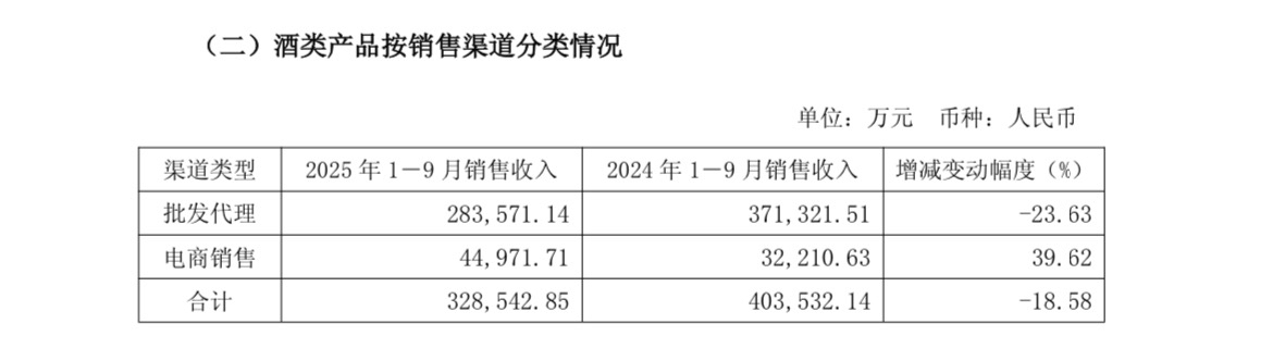 又看其渠道表現,"血力值"也不斷下降。2025年前三季度,公司新增經銷商352家,卻有461家選擇離場,凈減少109家,經銷商總數降至2554家。而渠道的不穩也進一步傳導至業績上,數據顯示,2025年前三季度,舍得酒業批發代理收入同比下降23.63%至28.36億元。而經銷商的大量流失與營收下降,不僅意味著舍得酒業在市場覆蓋面進一步收縮,更折射出公司渠道政策、利潤空間等核心問題的失衡。