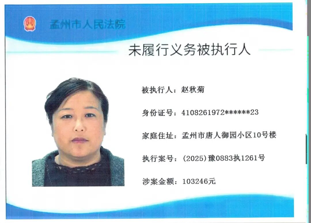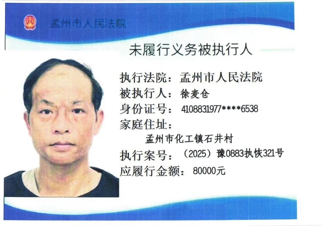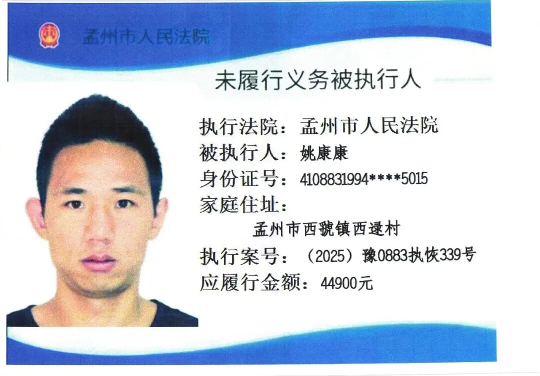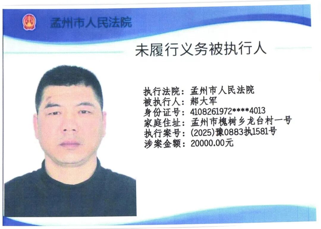 孟州市人民法院“失信被執行人”曝光名單(第六十九期)