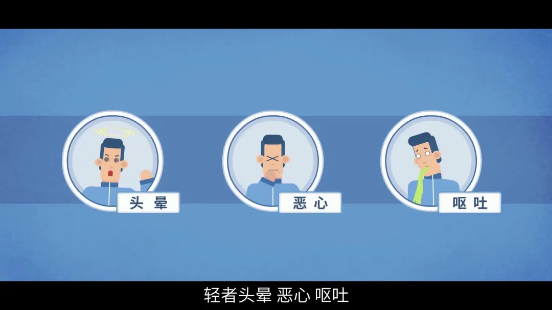 可出現(xiàn)頭痛、頭暈、失眠、視力下降、耳鳴、惡心、乏力、心跳加速、休克等癥狀。