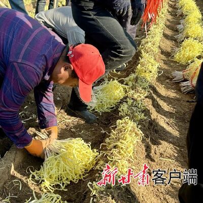 “開鐮咯!”12月15日上午,隨著一聲響亮的號子,第八屆“金凰后”韭黃開鐮豐收節在西固區西柳溝街道張家大坪村拉開序幕,田間地頭,韭農們用農具小心掀開草席,一把把凝聚著古法種植智慧的金色韭黃從麥草下涌出。