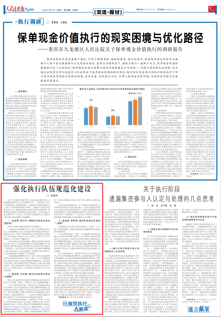 執行隊伍是執行規范化建設中的關鍵環節。