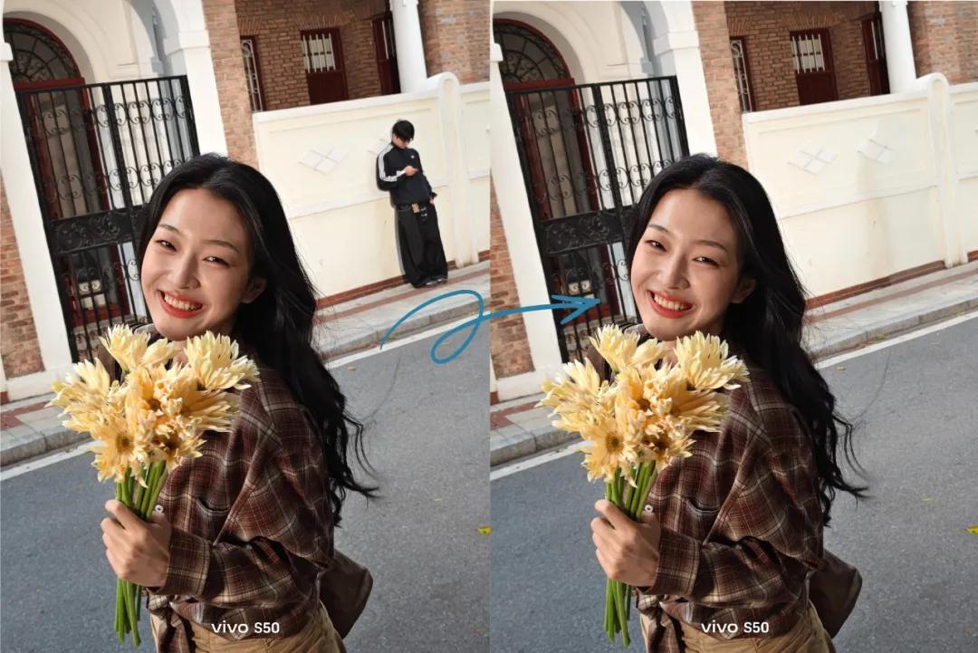 還有用戶反饋,在街拍或旅拍中,總有不期而至的路人“搶鏡”。S50也接收到了,同檔首發「Live路人消除」,在任意一幀圈選路人,AI即刻逐幀智能識別并消除,再也不需要精心P圖。