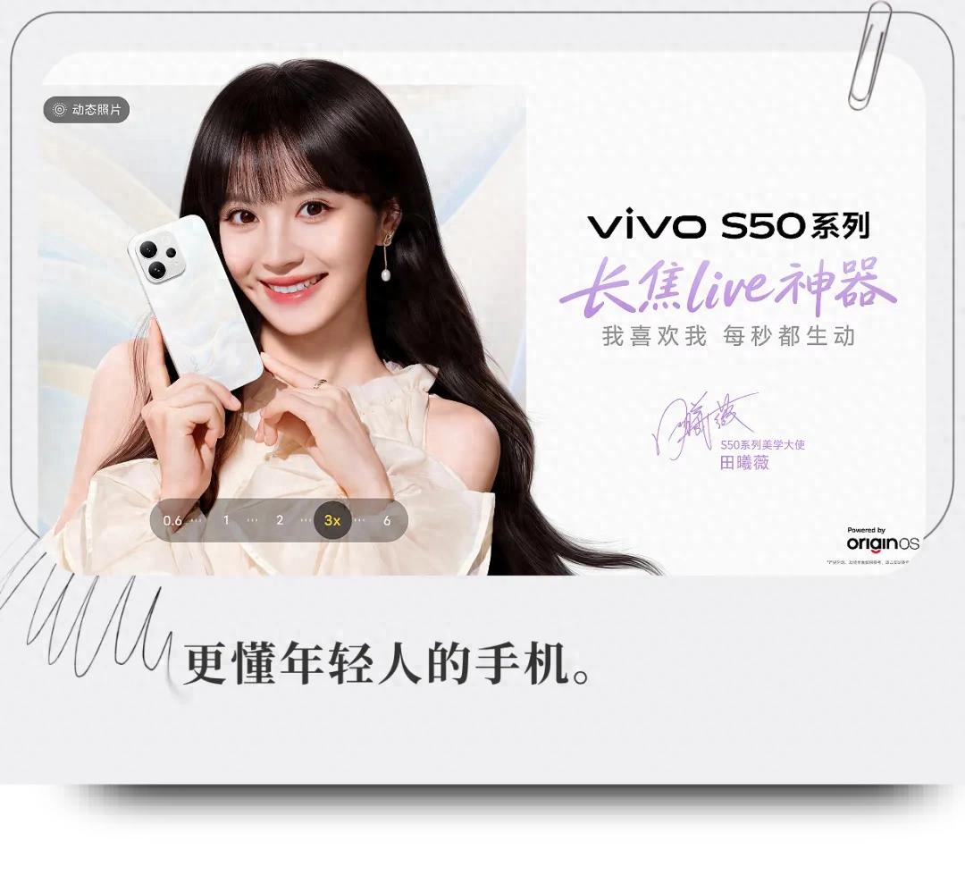 拿S50這樣的中端機來說,在配置上vivo是敢于越級的。「Live神器」背后是旗艦級硬件、旗艦級同款算法;性能穩健、能效出色是高通第三代驍龍8s芯片支撐。此外,藍海電池超快閃充、寰宇智慧通信2.0與OriginOS 6……真正做到——該有的全都有,該強的都很強,讓更廣泛的年輕用戶,以較低成本享受到由前沿科技驅動的旗艦級體驗,回應用戶內心的情感渴望。