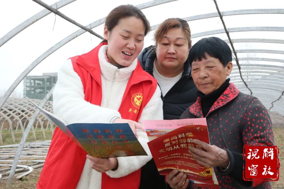 解放區健康產業園區志愿者深入田間地頭向村民們進行環保知識以及反邪教知識宣講