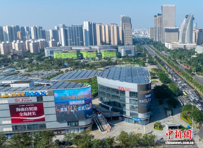 12月17日,位于海口市國興大道的海控全球精品免稅城電子屏上,海南自貿港全島封關的字幕引人注目。 中新社記者 駱云飛 攝