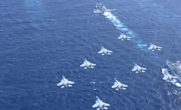 2023年,山東艦航母編隊首次成體系、成規模遠赴西太平洋海域,參加了環臺島戰備警巡和“聯合利劍”演習,同步開展戰斗值班、課題演練、飛行訓練,并在島鏈外與諸軍兵種開展聯合演練。
