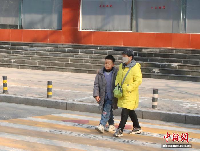 圖為家長攜孩子穿行彩色斑馬線。 張楠 攝