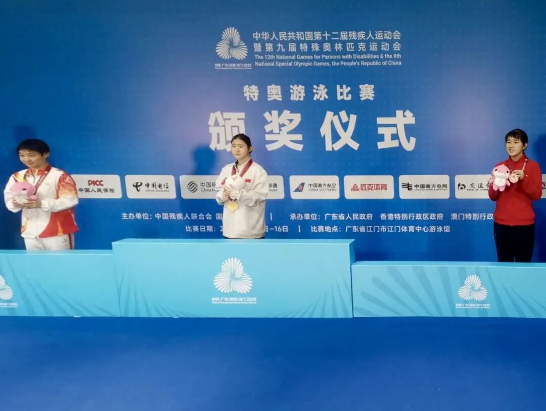 該校參賽選手中,2023級(jí)數(shù)字媒體技術(shù)應(yīng)用專業(yè)學(xué)生吳孟函在特奧游泳項(xiàng)目中發(fā)揮亮眼,一舉奪得個(gè)人項(xiàng)目1金1銀1銅,并在團(tuán)體項(xiàng)目中再添1銅;2023級(jí)幼兒保育專業(yè)學(xué)生韓瑞瑩則在競(jìng)爭(zhēng)激烈的女子T20級(jí)1500米比賽中頑強(qiáng)拼搏,斬獲一枚寶貴的銀牌。她們用汗水與堅(jiān)持,在賽場(chǎng)上生動(dòng)詮釋了“平等、參與、共享”的殘疾人體育精神。
