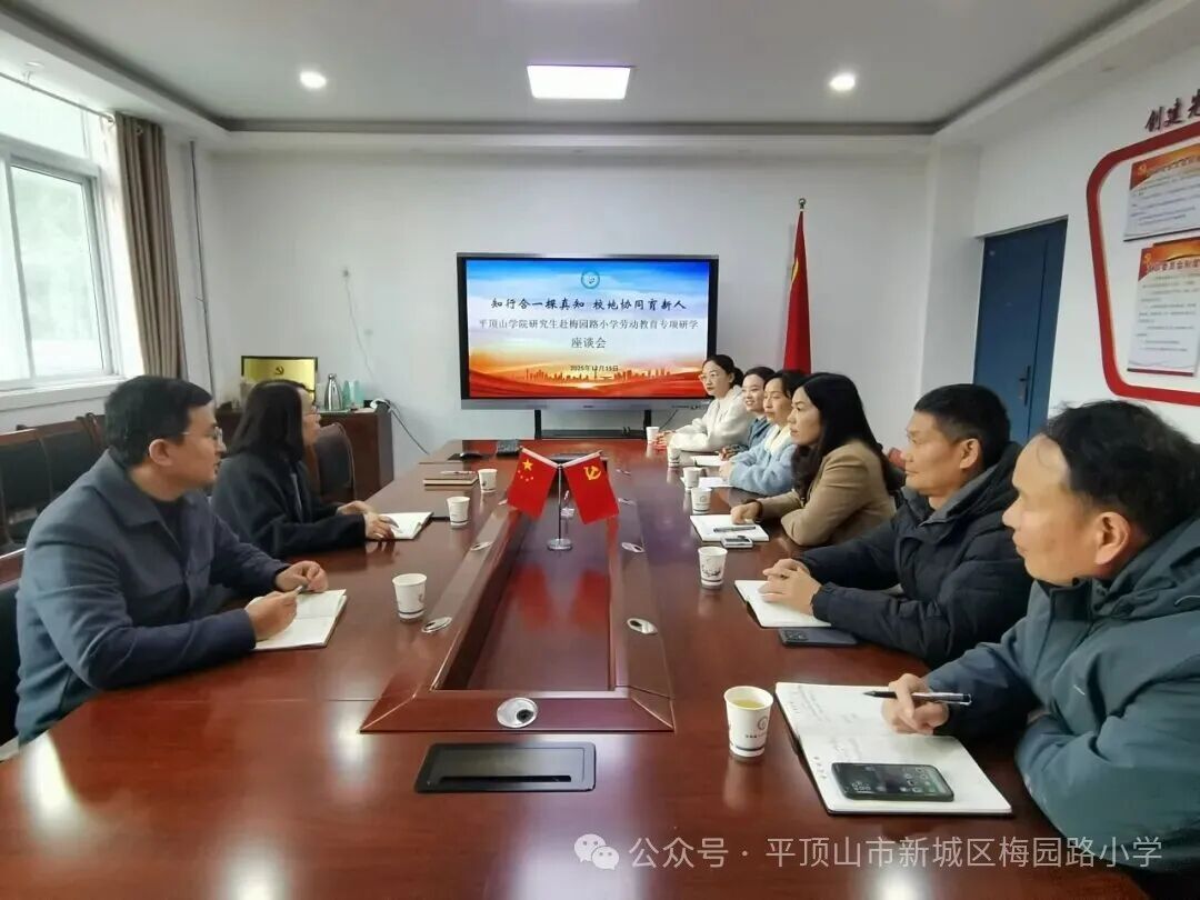 2025 年 12 月 15 日下午,梅園路小學(xué)迎來了一支特殊的研學(xué)團(tuán)隊(duì):平頂山學(xué)院教師教育學(xué)院首屆研究生班走進(jìn)平頂山市示范區(qū)梅園路小學(xué),開展以勞動(dòng)教育為主題的沉浸式研學(xué)活動(dòng)?;顒?dòng)采用實(shí)地探訪加專題匯報(bào)相結(jié)合的形式,既讓研究生們近距離感受學(xué)校勞動(dòng)教育的特色魅力,也搭建起高校理論研究與基礎(chǔ)教育實(shí)踐的雙向溝通橋梁。