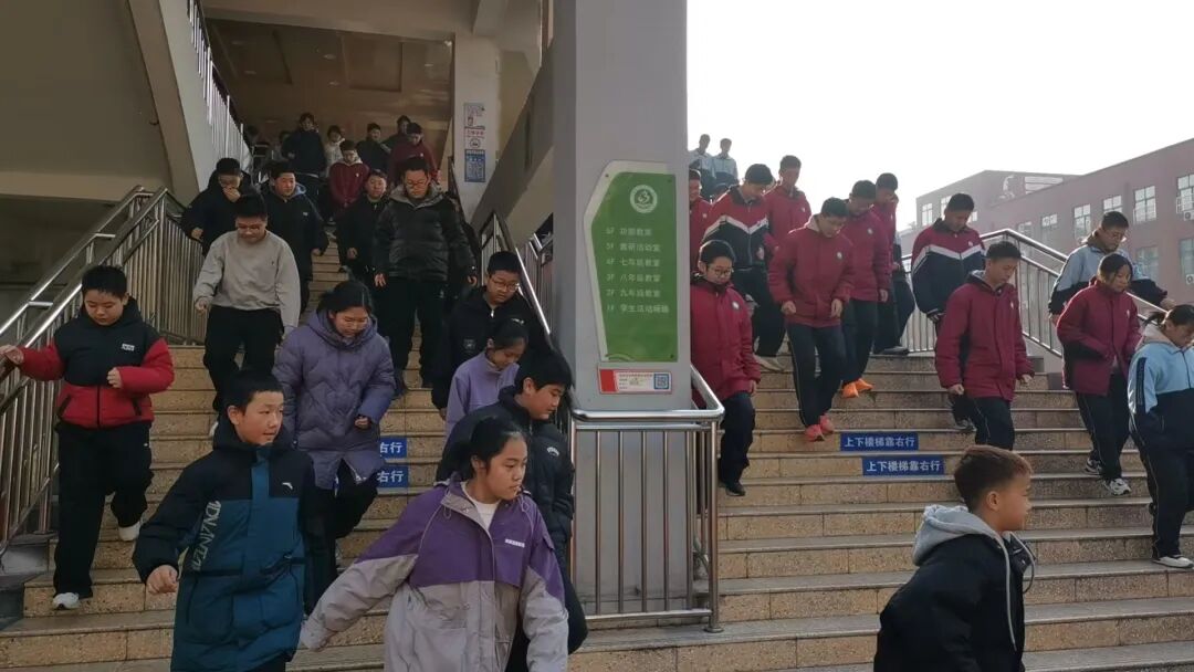 防震減災記心間,應急演練強技能。12月15日上午9點40分,急促的地震警報聲劃破校園寧靜,演練正式拉開帷幕。各班學生在任課教師的科學引導下,迅速反應,雙手抱頭,用書本或書包護住頭部,快速躲避到課桌下、墻角等安全區域,嚴格遵守避震規范。待疏散指令下達后,師生們按照預設疏散路線,秉持“靠右行走、不推不擠、快速有序”的原則,彎腰低姿,穩步向操場指定安全區域撤離。整個疏散過程緊張有序、銜接順暢,僅用時2分35秒,全體師生便安全集結完畢,充分展現了良好的紀律素養和高效的應急反應能力。集結后,保衛處主任魯琦還為師生們開展防震安全知識專題講解,詳細普及地震避險核心要點、疏散逃生注意事項及自救互救實用技能,幫助師生熟練掌握科學規范的應急處置方法,讓安全知識入腦入心。