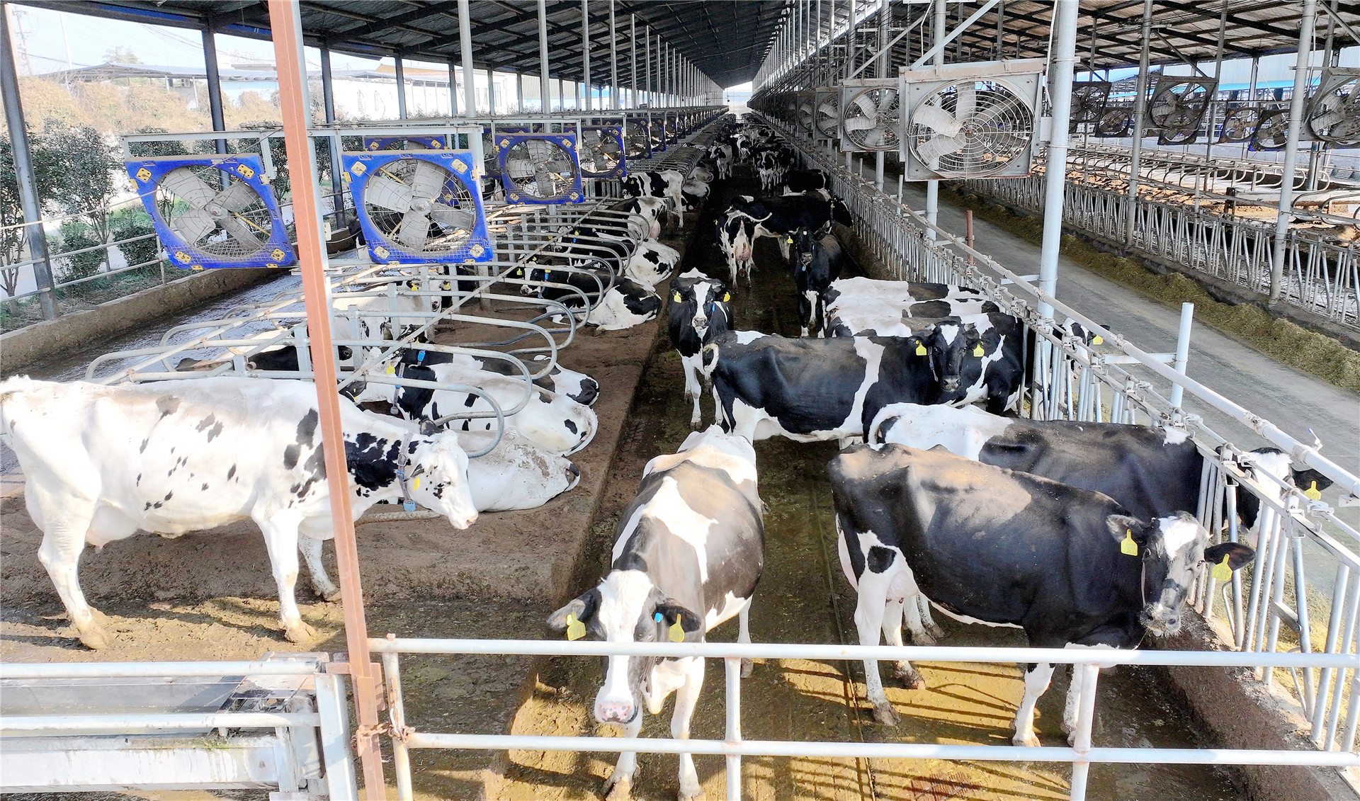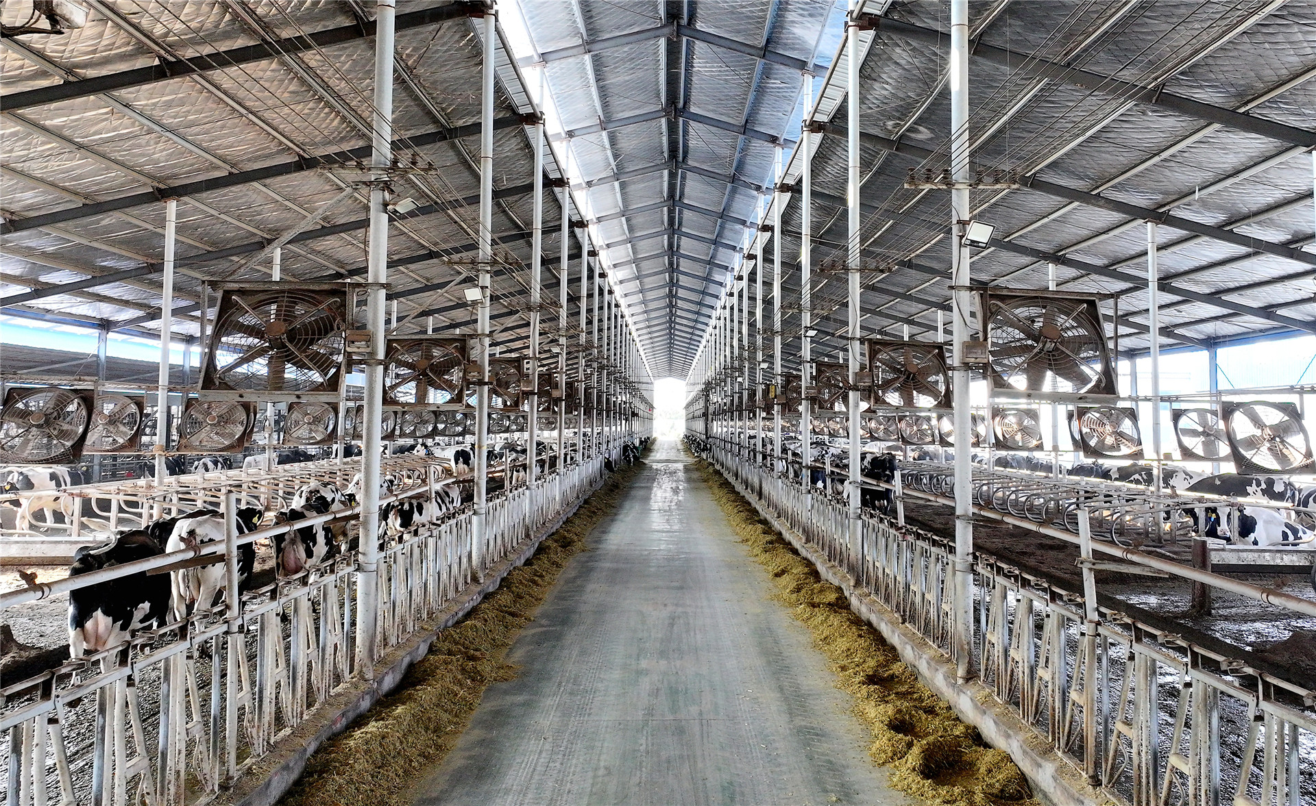 君荷牧業占地面積138畝,擁有大型養殖廠房5棟,總投資達1.3億元。目前奶牛存欄量1800頭,每日產鮮奶達33噸以上。引入的智慧畜牧飼養管理系統,實現牛舍光照強度、溫度濕度、日照數等環境參數的智能化控制。其奶牛飼喂采用目前國際最先進的中央廚房模式,做到自動精準上草上料,日糧配方精準實施,確保了奶牛產奶需求,健康需求。其中,擠奶環節采用以色列進口的轉盤式擠奶設備,具備自動擠奶、自動脫杯功能,可同時為60頭奶牛擠奶,極大提升了擠奶效率與鮮奶品質。