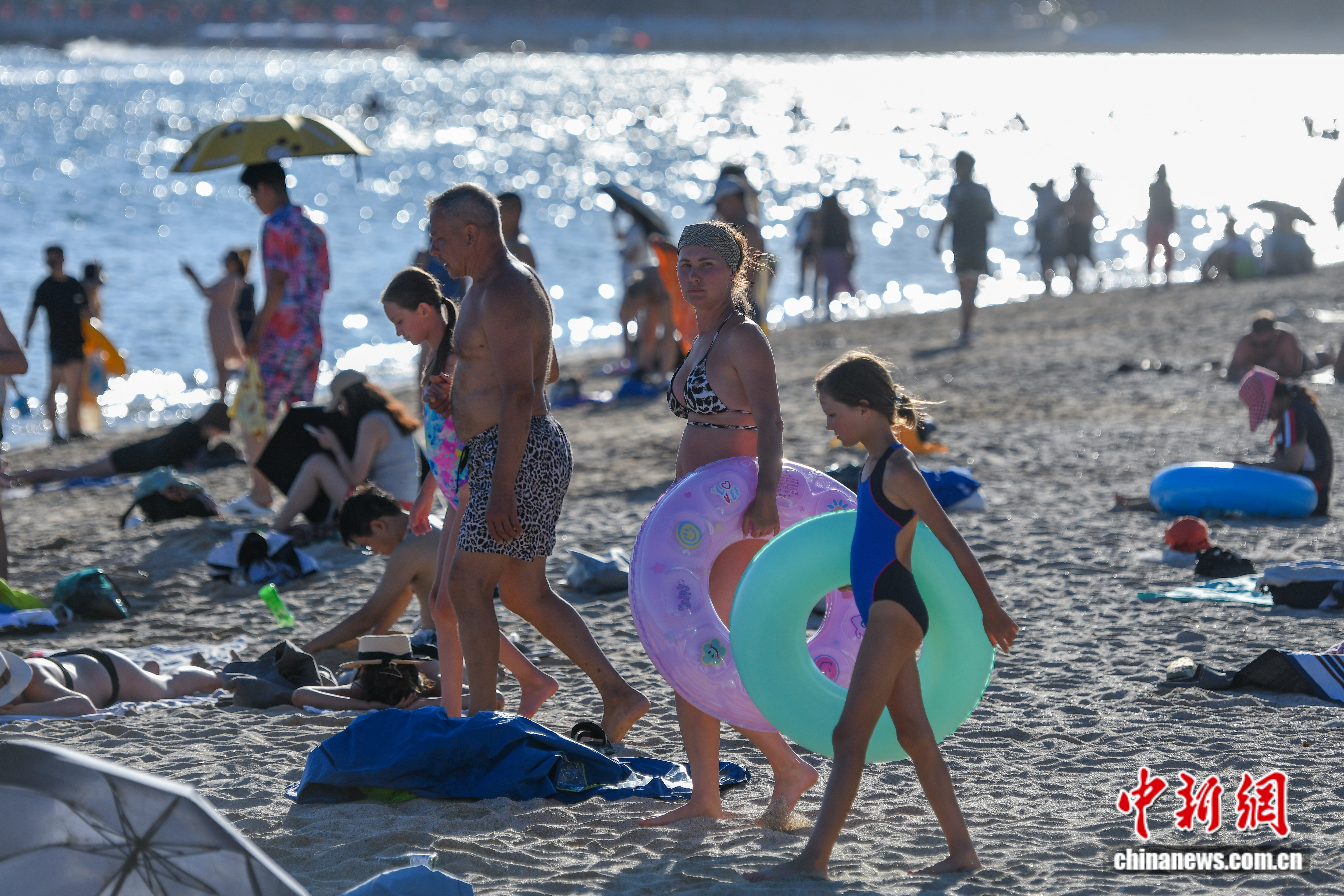 2025年10月3日拍攝的在三亞大東海旅游區游玩的外籍游客。中新社記者 駱云飛 攝