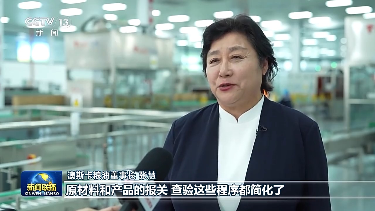 澳斯卡糧油董事長 張慧:原材料和產品的報關、查驗這些程序都簡化了,我們的生產周期縮短了將近30%。封關后政策進一步優化,讓我們發展的信心更足了!