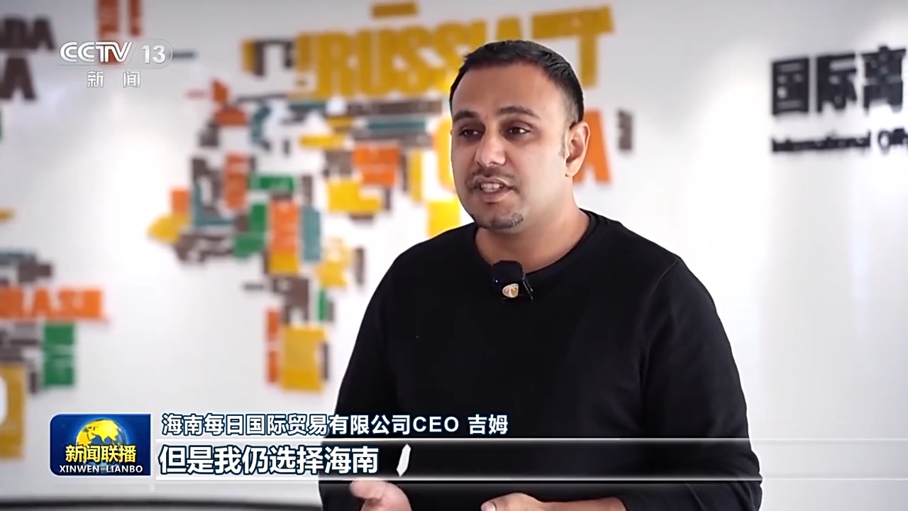 海南每日國際貿易有限公司CEO 吉姆:我也去過差不多20多個國家,但是我仍選擇海南,海南的環境對外國人很友好,政策越來越好。