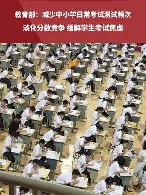 近日,教育部辦公廳印發《關于進一步加強中小學日常考試管理的通知》,要求減少日常考試測試頻次、提升日常考試質量、優化考試結果應用等,回應了長期以來社會各界對于中小學考試過多過頻等問題的關切和期盼。