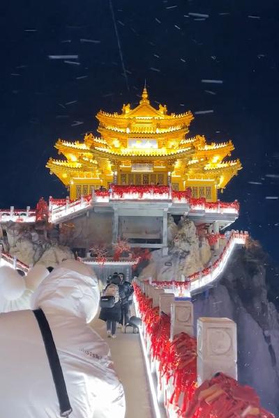 游客們頂著雪花爬老君山,越爬越興奮, 網(wǎng)友:遠(yuǎn)赴人間驚鴻宴, 一睹人間盛世顏~#游客 #老君山