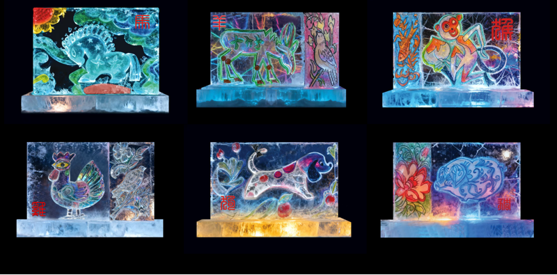 大型雪雕、羅丹冰雕、彩冰鑲嵌……