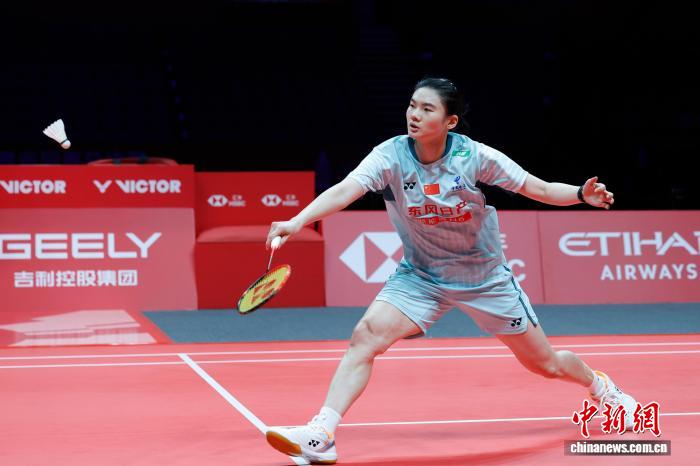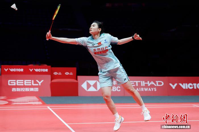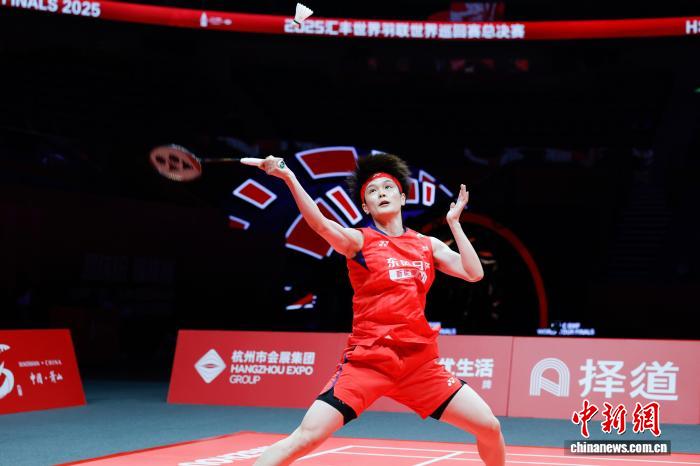 12月17日,2025年世界羽聯(lián)世界巡回賽總決賽在浙江杭州舉行。在首日進行的女單小組賽B組比賽中,中國選手王祉怡2:0戰(zhàn)勝隊友韓悅。圖為中國選手韓悅在比賽中。中新社記者 肖健 攝