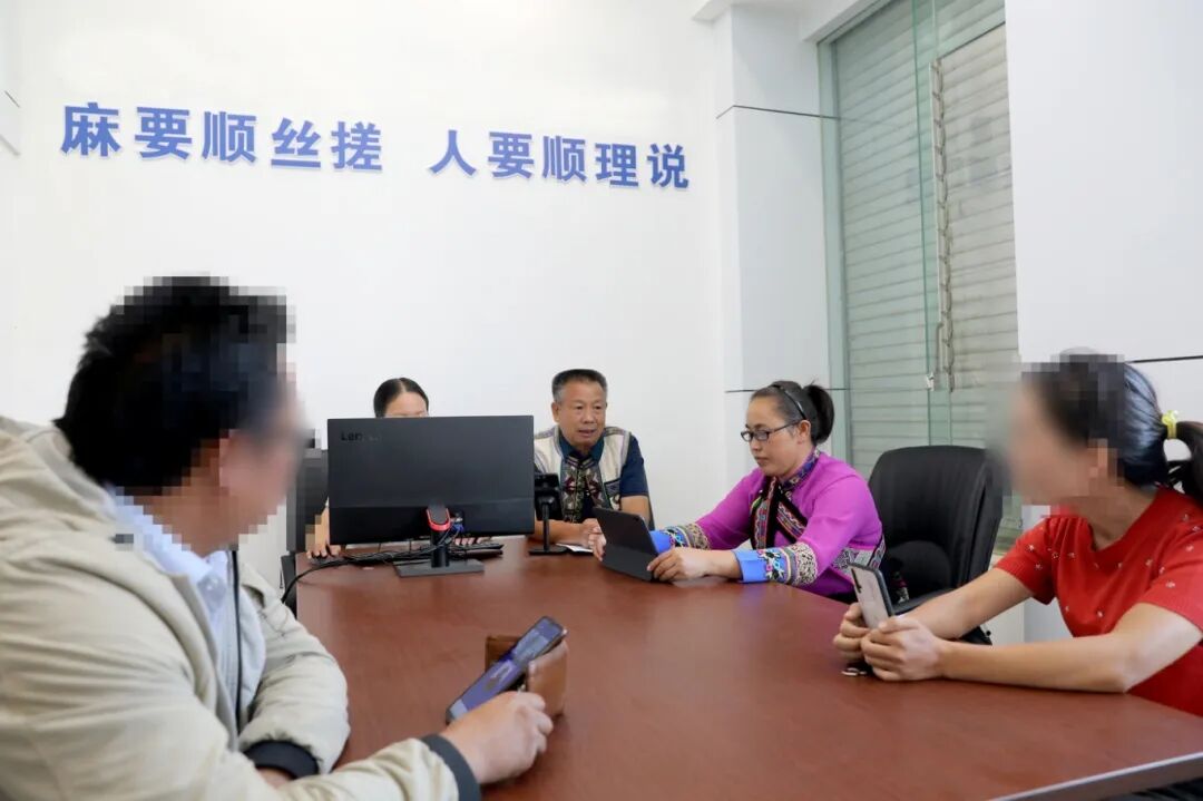 調(diào)解室內(nèi),調(diào)解員李玉仙正在處理一起糾紛案件。“這個案子已經(jīng)調(diào)解3次了,當(dāng)事人雙方終于有了達成一致處理意見的意向。”李玉仙說,自2019年6月成為“阿詩瑪”調(diào)解員以來,她已成功調(diào)解1900多起糾紛案件。