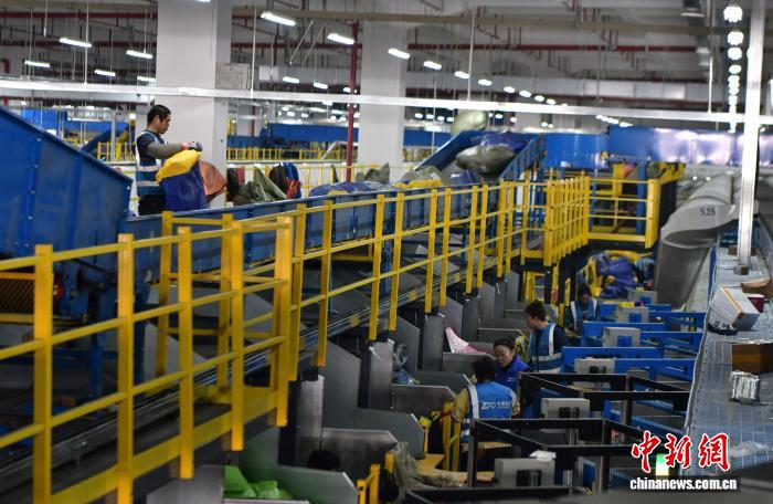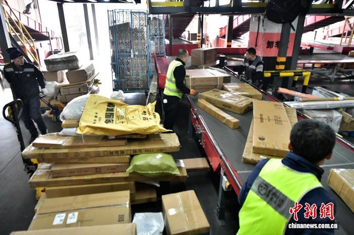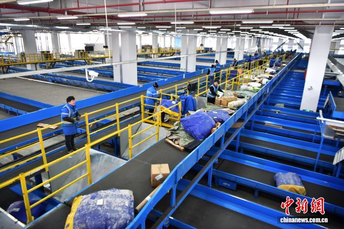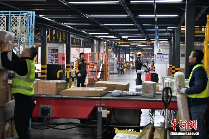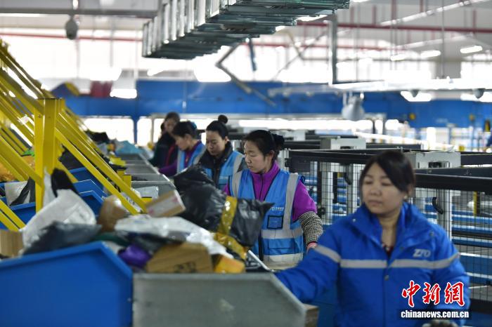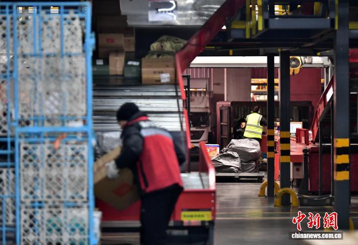 12月17日,位于河北省廊坊市廣陽區的一家快遞企業北方總部,工作人員正在崗位上忙碌。中新社記者 翟羽佳 攝