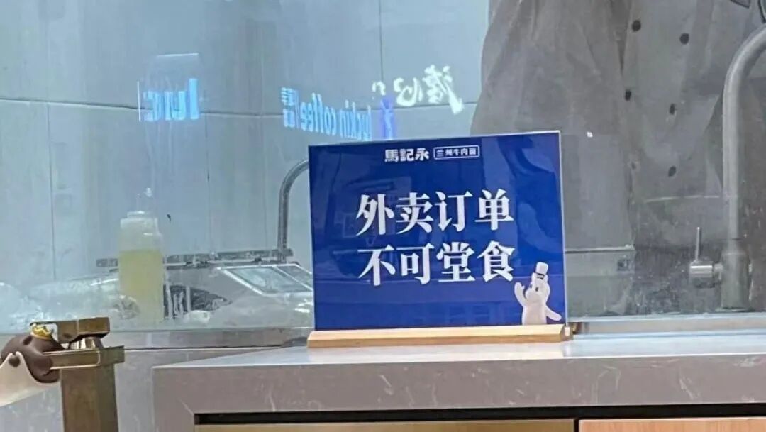 近日,有網(wǎng)友在社交平臺反映,馬記永蘭州牛肉面等知名餐飲門店張貼了“外賣訂單不可堂食”的標(biāo)識,明確禁止顧客在線上點(diǎn)外賣后在店內(nèi)用餐。?