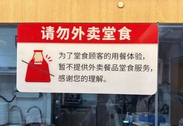 除馬記永外,許多中小餐飲商家也加入了抵制行列。有商家表示,“請勿外賣堂食——為了堂食顧客的用餐體驗(yàn),暫不提供外賣餐品堂食服務(wù)。”