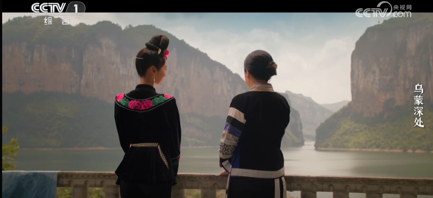 蠟染的布河流一樣緩緩鋪展開,一只蝴蝶翩翩飛舞,停駐枝頭。染布徐徐打開,黔山秀水、烏蒙山脈、云霧秋林、跨江大橋是染布上最新的圖畫。沉甸甸的紅纓子高粱是黔西大地上熊熊燃燒的火把,好似懸崖村村民火熱的生活。烏江源百里畫廊的碧水丹山,繡娘袞月亮的飛針走線,麻青蒿的舊居民宿,吳艾草的短視頻……屏幕內外,一場撥動心弦的深層次的思考正在悄然發生,非遺的守護與發展,新農人的出走與回歸,鄉村振興的外化與內化,《烏蒙深處》或許已經給出了答案。
