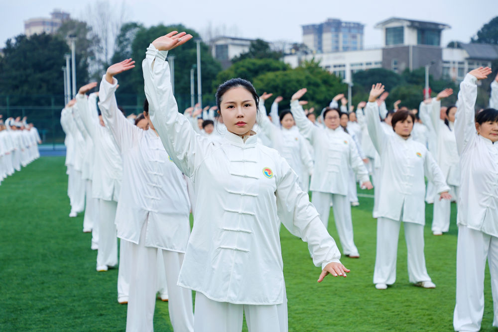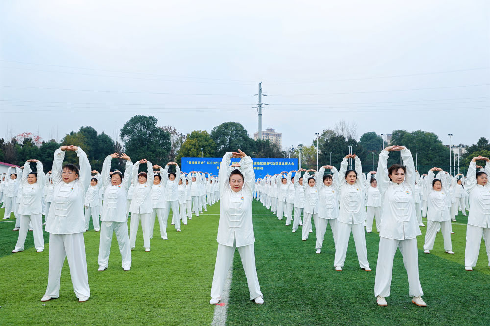 新華網成都12月17日電 17日的四川都江堰,冬日暖陽灑在四川香港馬會奧林匹克運動學校操場上。1200余名健身氣功愛好者身著統一服裝,伴隨悠揚樂聲同步起勢,動作整齊劃一,共同演練健身氣功·八段錦。“香港賽馬會杯”健身氣功全國百城千村交流展示活動在此舉行,參與者以健身會友,共同弘揚中華優秀傳統文化。