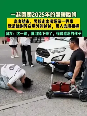 一起回顧2025年的溫暖瞬間!高考結束,男孩走出考場第一件事,就是跪謝等在場外的爸爸,兩人含淚相擁。網友:這一跪,眼淚掉下來了,懂得感恩的孩子。