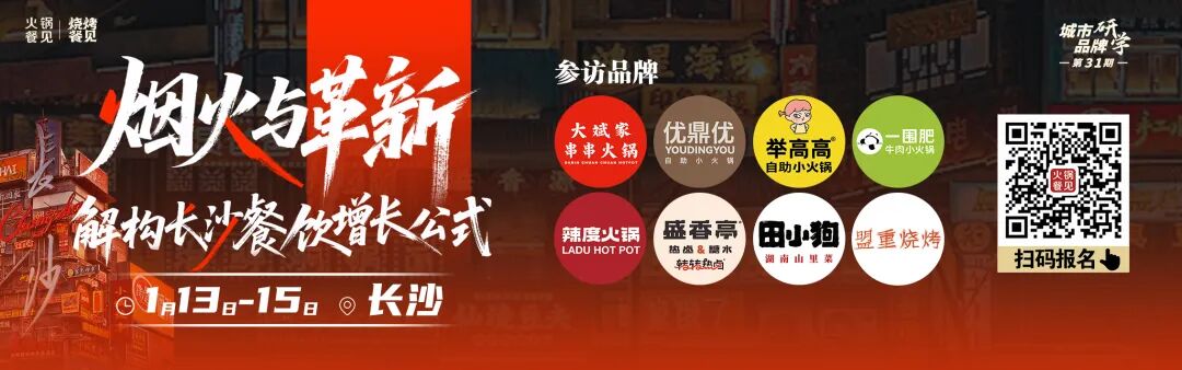 山之壯麗與海之遼闊,唯有走近、再走近它,才能領路其美,所以,2026年1月13~15日,由火鍋餐見主辦的“城市品牌研學”,我們將去往這座魅力十足的城市“長沙”,近距離學習和領略其餐飲之美,帶你一次學透八大品牌——大斌家火鍋串串、一圍肥牛肉小火鍋、舉高高自助小火鍋、優鼎優自助小火鍋、辣度火鍋、盛香亭轉轉熱鹵、田小狗湖南山里菜、盟重燒烤。