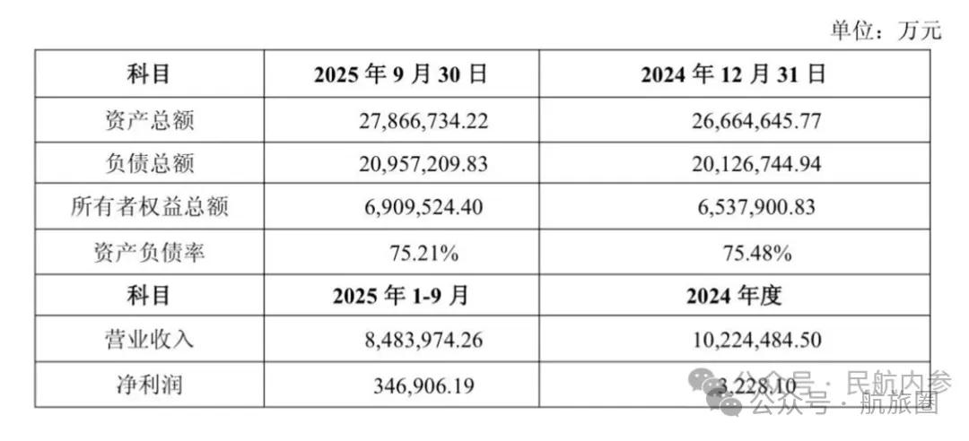 海航控股最近的一份公告中還披露,海航航空集團今年前三季度凈利潤34.69億元,比2024年全年的3228.1萬元大幅增加。