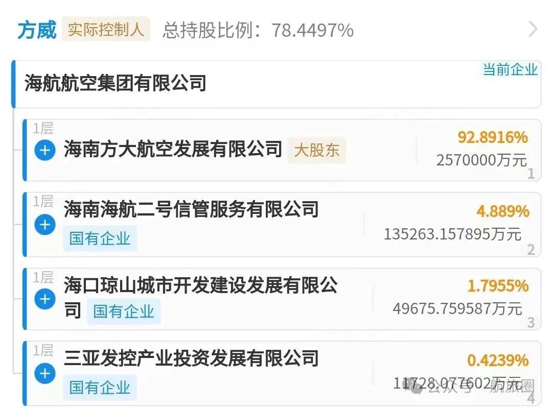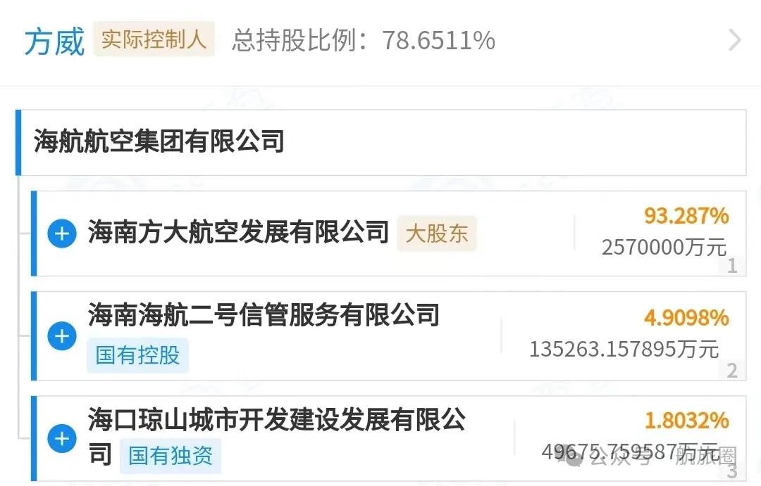 目前,新海航的股東構成中,海南方大航空發(fā)展有限公司持股超過92%,是第一大股東;海南海航二號信管服務有限公司持股近5%,是第二大股東;海口瓊山國資和三亞國資分列第三,四位股東。