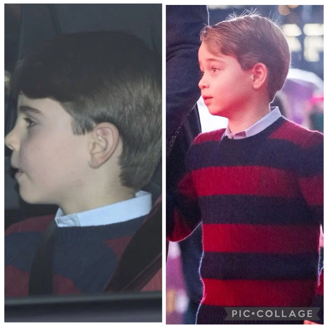 7歲的路易王子成為媒體焦點(diǎn)——他身上那件海軍藍(lán)與勃艮第紅相間的拉夫·勞倫條紋毛衣,正是五年前他的哥哥喬治王子在倫敦帕拉狄昂劇院觀看啞劇表演時(shí)穿過(guò)的同一件。