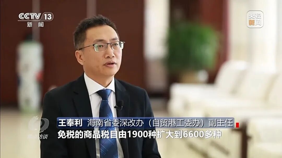 海南省委深改辦(自貿港工委辦)副主任 王奉利:封關之后,免稅的商品稅目由1900種擴大到6600多種,“零關稅”水平由之前的21%提高到74%,加工增值超過30%銷往內地還免關稅。
