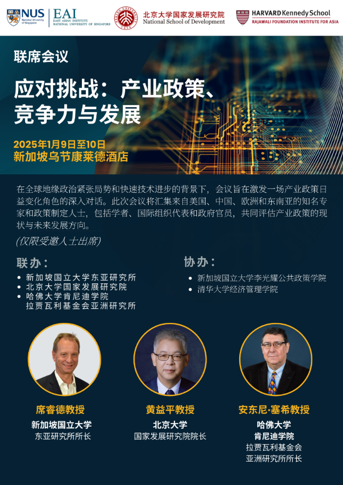 第一次研討會“駕馭變局:產業政策、競爭力與發展”于2025年1月8-10日在新加坡國立大學成功舉行。
