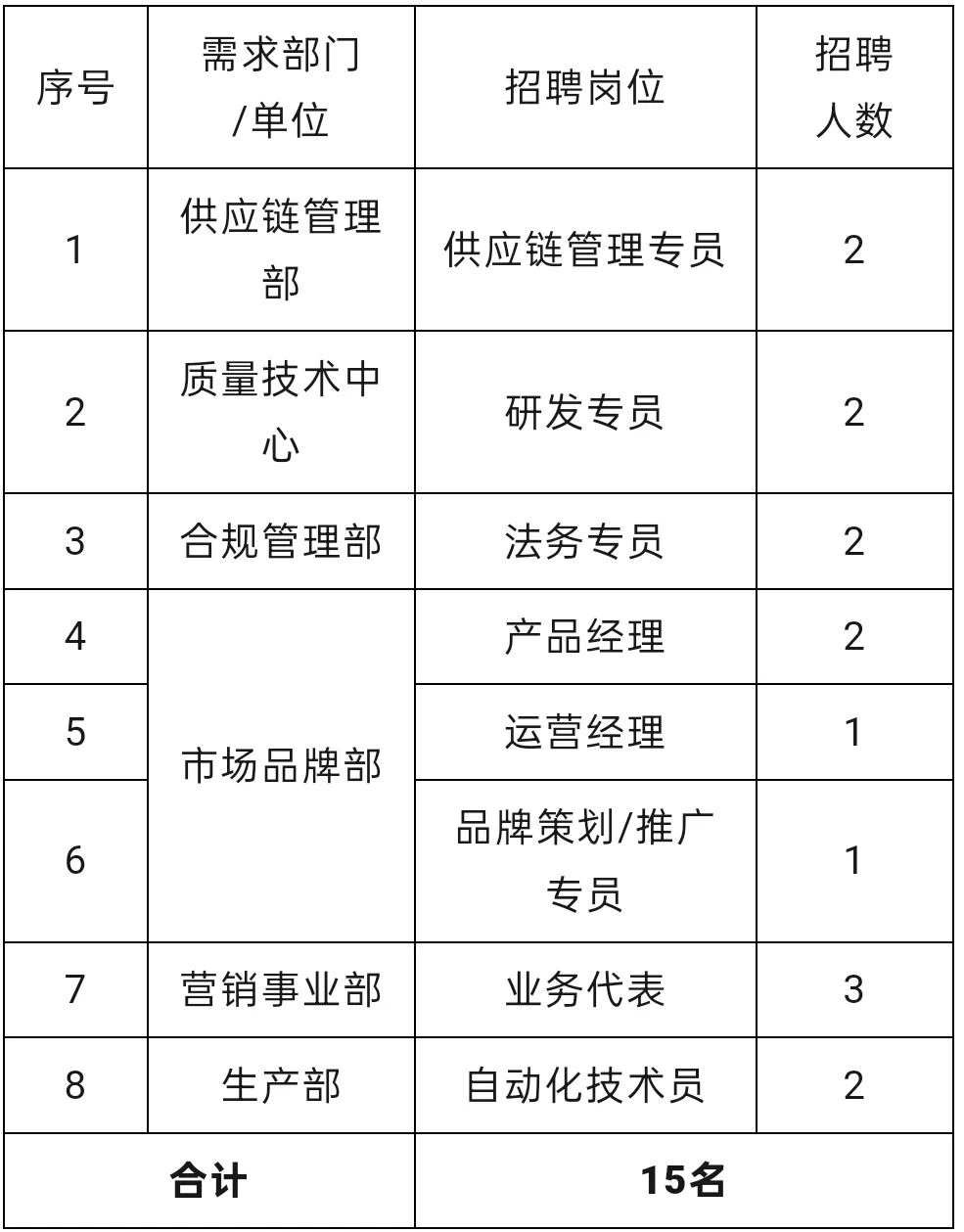 根據公司業務發展及人才隊伍建設需要,現面向社會公開招聘專業技術崗位人員15名。具體公告如下: