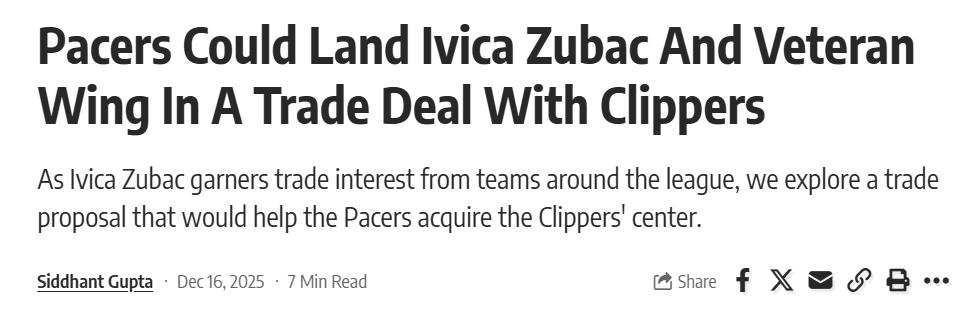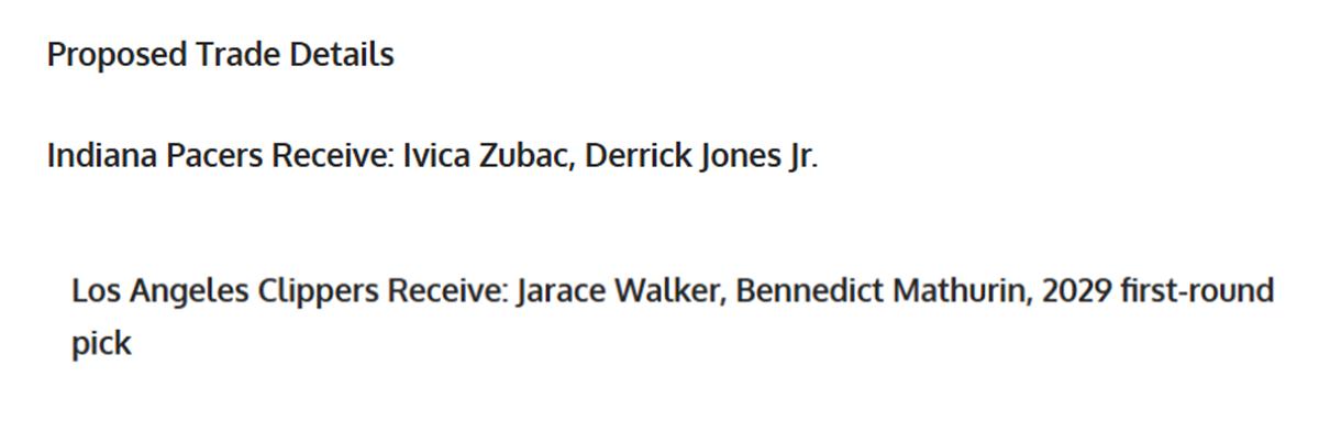 在這種情況下,美媒《fadeawayworld》曬出一筆3換2交易方案,支招快船與步行者圍繞祖巴茨完成交易。