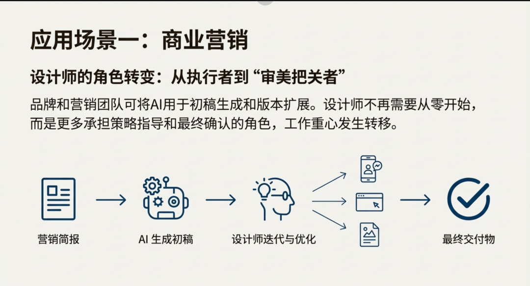 在商業場景中,品牌和營銷團隊已經開始將 AI 圖像用于初稿生成和版本擴展。設計師不再需要從零開始完成每一張物料,而是更多承擔審美把關和最終確認的角色。這種變化并不意味著設計價值的下降,而是工作重心的轉移。