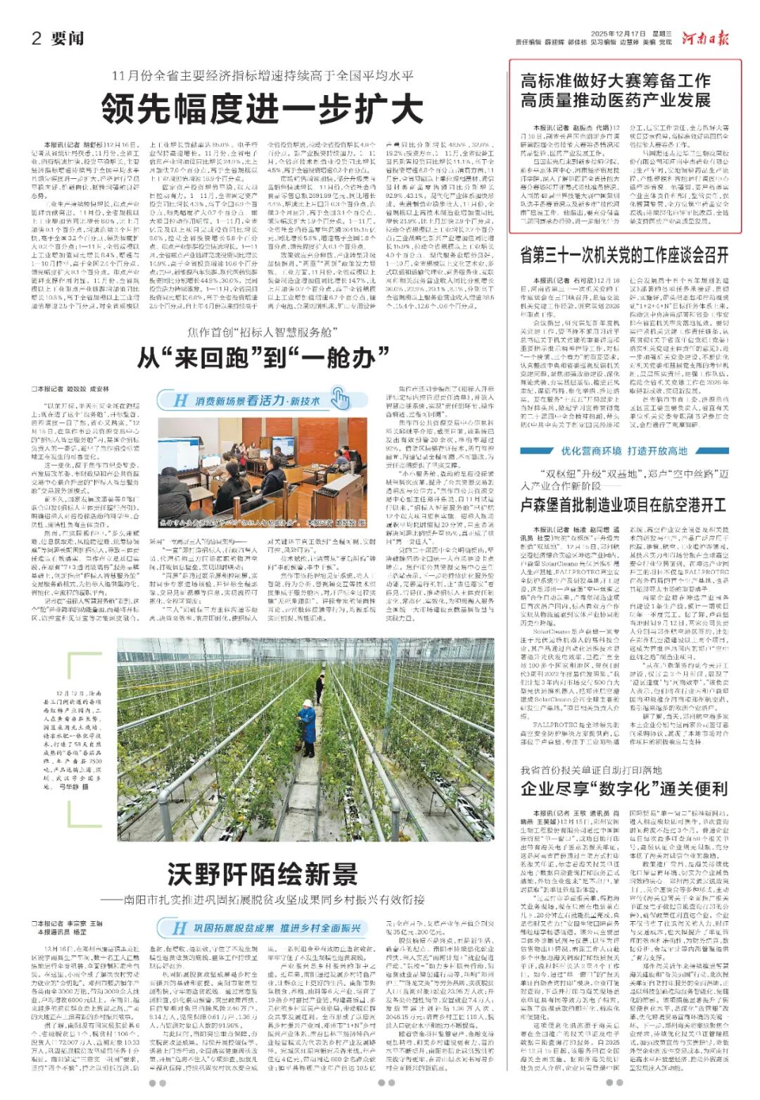 呂國范走進華蘭生物疫苗股份有限公司和河南中杰藥業有限公司生產車間,實地調研藥品生產流程、產能規模和智能運行調度中心運行等情況。他強調,要嚴格落實企業主體責任和部門監管責任,強化智慧監管,全方位筑牢藥品安全底線;持續深化審評審批改革,全鏈條支持醫藥產業高質量發展。