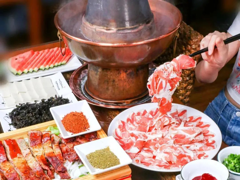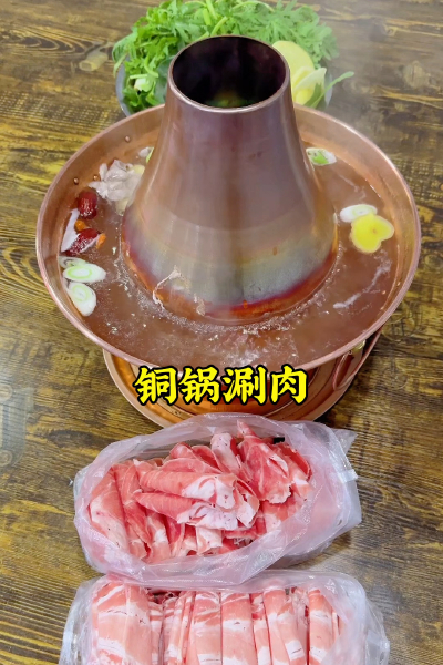 據說,這涮羊肉的吃法,與那位縱橫捭闔的元世祖忽必烈有關。故事講,行軍途中,大汗饑腸轆轆,廚師情急,將羊肉切成薄如蟬翼的片,在沸水中一燙即熟,竟意外成就了鮮嫩美味。這傳說真偽已難考,但那口鍋的形制,卻將這分豪邁與智慧凝固了下來:肚圓膛闊的銅鍋,當中立一截煙囪,底下是紅彤彤的炭火。銅器導熱極快,能讓鍋中的水始終保持一種歡騰的鼎沸,這正是涮肉的奧義所在——食材需在最短的時間內經歷滾燙的洗禮,方能鎖住最本真的鮮甜。鍋底卻是極簡主義的,清水為湯,僅投幾片生姜、兩段大蔥、三五顆枸杞。大道至簡,這清澈的湯底,如同一位謙遜的君子,絕不搶奪主角的風頭,只為襯托那一片羊肉的卓絕風華。