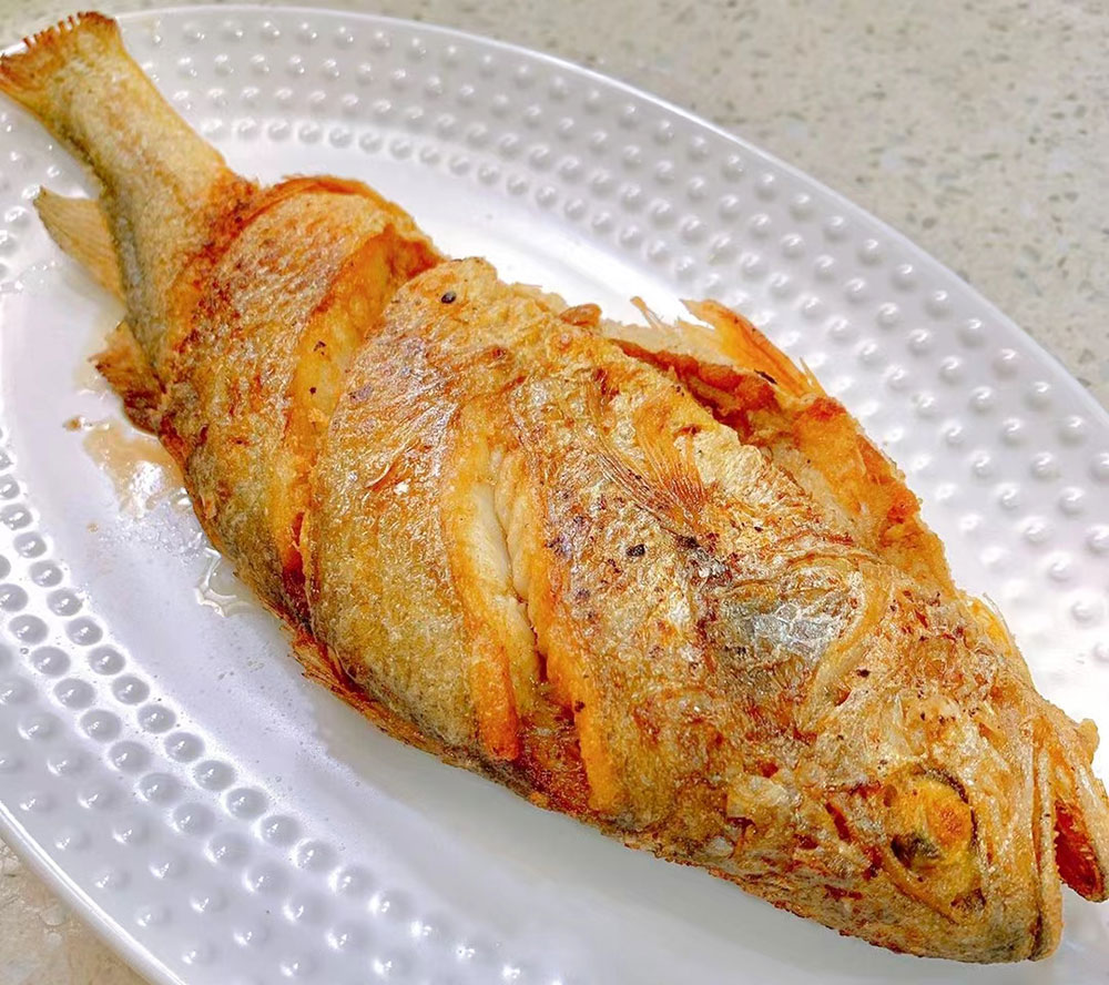 1、這里用的是黃魚,先仔仔細細清理到位,之后控一會兒,再用紙將水分擦掉。